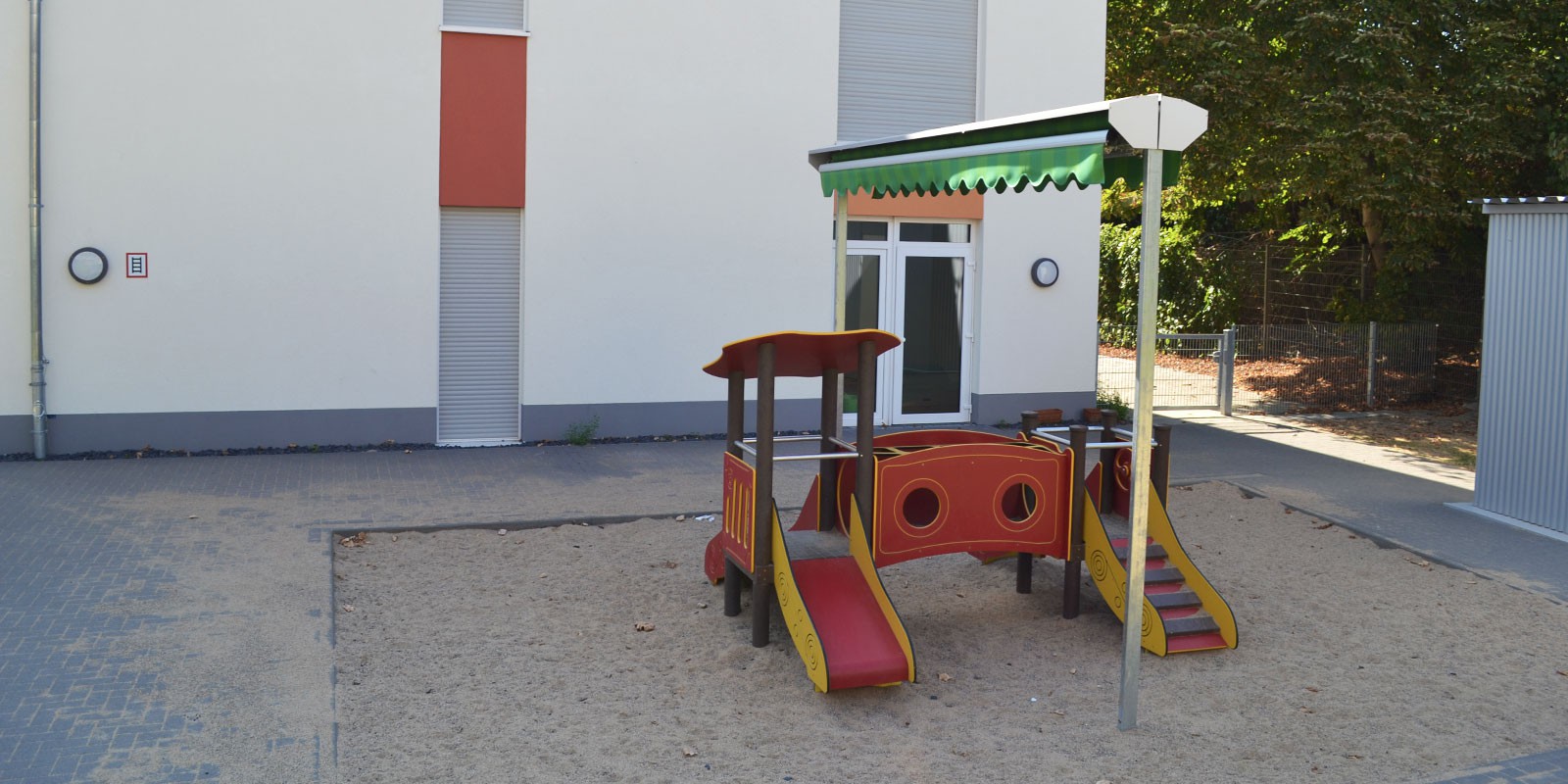 Für den Neubau der Kindertagesstätte mit 11 Wohnungen im geförderten musste ein altes Wohnhaus abgerissen werden, in dem zuvor die KiTa untergebracht war.